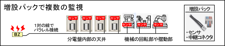センサ込みの増設パックを追加することで、1対の線でより多くの監視が可能になります。